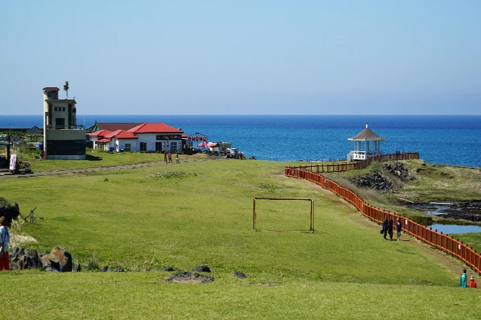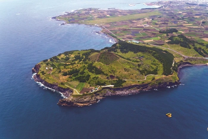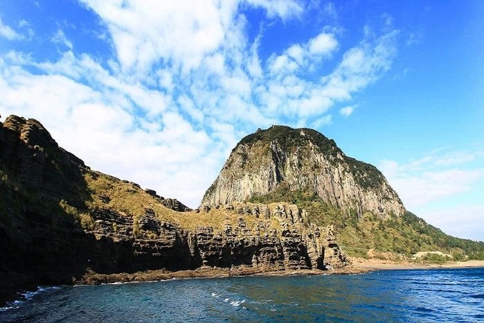 산방산의 남쪽, 가파도가 손에 잡힐 듯 보이는 바닷가에 불끈 솟은 산이 송악산이다. 99개의 작은 봉우리가 모여있어 일명 99봉이라고도 한다. 세계적으로 유례가 드문 이중 분화구-1차 폭발로 형성된 제 1분화구 안에 2차 폭발이 일어나 2개의 분화구가 존재-의 화산지형이기도 하다.